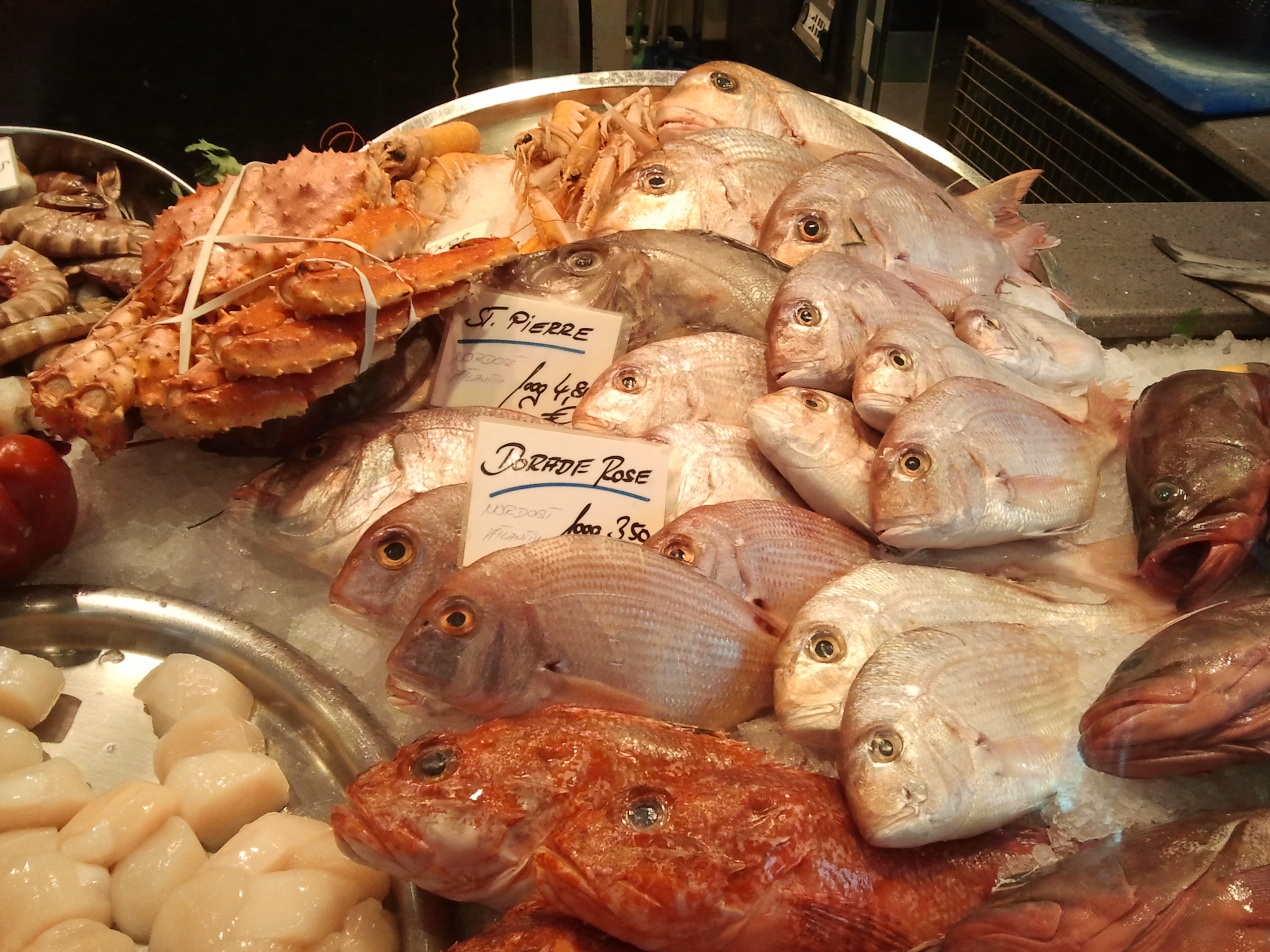 Na poslijetku razgledavanja Viktualienmarkta, na red je došla mala ribarnica. Nema neugodnog mirisa, nema mokrih podova, samo ljudi koji ispred sjede na barskim stolicama, piju vino iz visokih čaša i jednu morske specijalitete. To je bila dovoljna naznaka kako se vjerojatno više radi o ‘fensi’ trgovini ribe i morskih plodova, nego o klasičnoj ribarnici malog mista. A što se nudi? Kilo hobotnice za 30 eura, kilo zubatca ili šanpjera (kovača) za 48 i kilo kozica (king prawns) za 50. Fileti tune koštaju 65 eura kilo, dok se za istu cijenu može kupiti i kilogram jakobovih kapica uvezenih iz Sjedinjenih Država. Cijene zvuče poput restoranskih, no trgovina je puna ljudi koji kupuju ribu i školjke izložene na ledu. Kroz glavu mi je samo prošlo kako trebaju pogledati oči i okrenuti škrge.