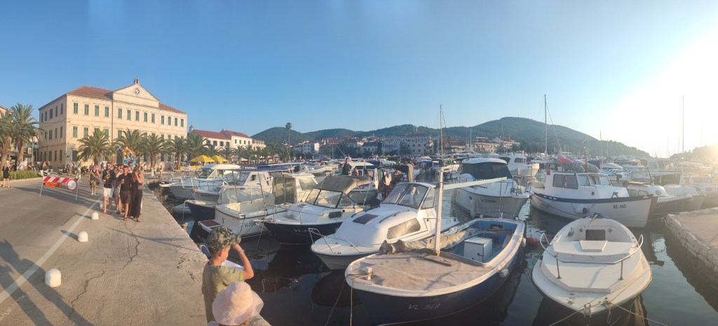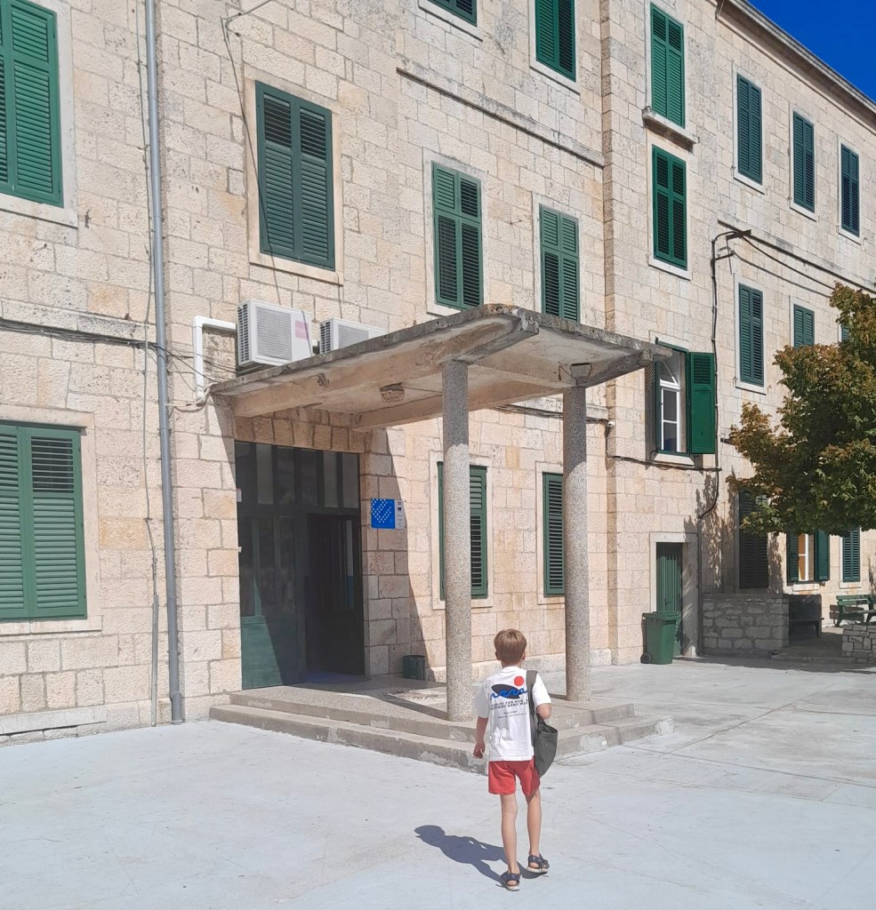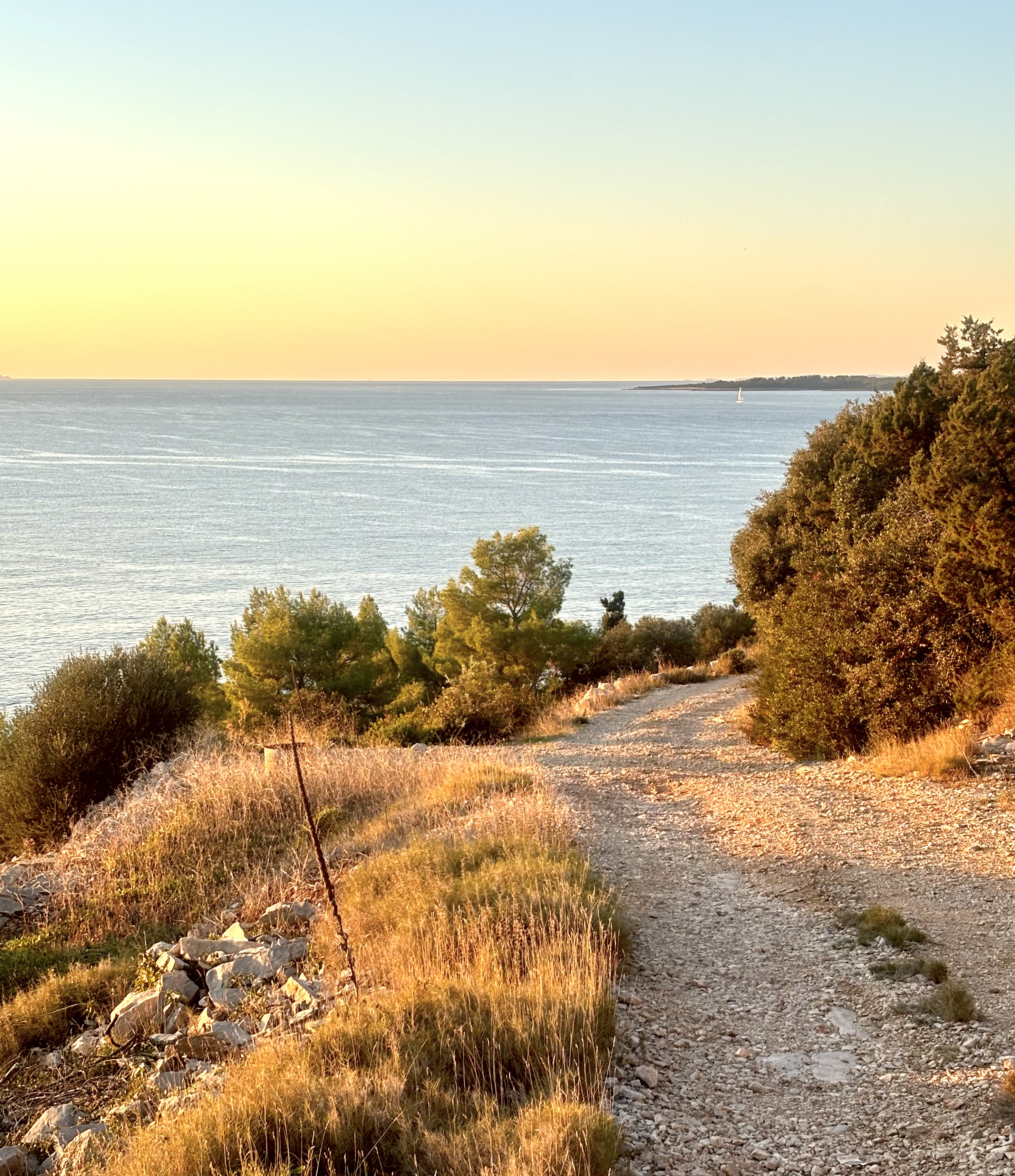 Poslije ljeta krenuli su vrtić i škola, a s njima i obaveze. Rekla bih da je u tom trenu krenuo i pravi otočki život. Kad pogledam unatrag na svaki dan, shvatim što su mi prijateljice htjele reći kad su govorile da na otoku nije dosadno i da im dan prođe za čas. Ono što mi je u cijelom danu najljepše možda je taj prvi trenutak ujutro kad se probudim i dođem u dnevni boravak koji gleda na Pinski rat. Između je samo zelenilo, a kuće na ratu, načrčkane crvenim krovovima tek čekaju da ih sunce obasja. Desno od te slike stoji par kamenih kućica, vjerojatno starih štala, omeđenih čempresima. Meni možda omiljen prizor s Pinskog rata. Iznad je samo nebo, plava se pretapa s bijelim oblacima. Pogled koji smiruje.